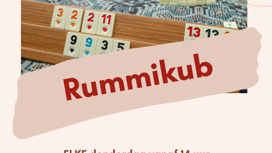 Word jij onze Rummikubkampioen? Schrijf je voor 1 maart in en neem deel aan onze competitie. Deze vindt plaats op 5 en 12 maart om 14 uur. Misschien kroon jij je tot kampioen en ga je naar huis met een prachtige eerste prijs.