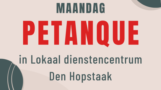 Vanaf april tot het einde van de zomer organiseren we wekelijks een gezellige petanque-namiddag, telkens bij mooi weer. Iedereen is welkom, of je nu ervaren bent of gewoon zin hebt in een ontspannen spelletje en fijne babbel. Kom langs, gooi een balletje en geniet van de zomerse sfeer!